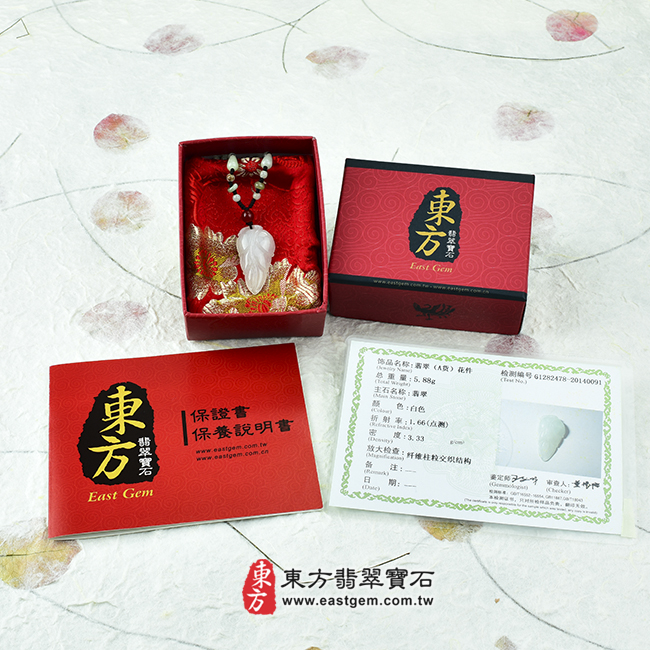 ⊙翡翠商品都有雙證書:附翡翠A貨證書,以及東方翡翠店家保證書。