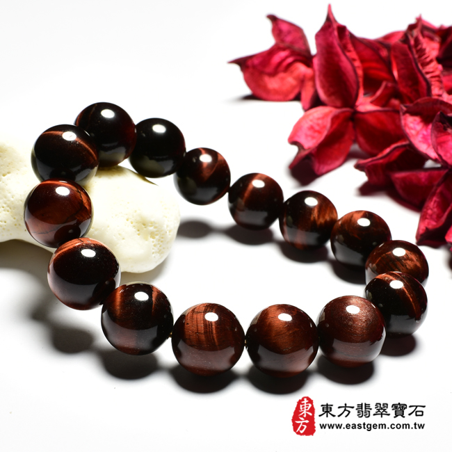 商品名稱:紅虎眼手鍊。(紅虎眼珠子,珠徑約14mm,OTR071)。客製化設計各種紅虎眼珠串、紅虎眼珠子、紅虎眼手鍊、紅虎眼手珠。★附東方翡翠寶石保證卡