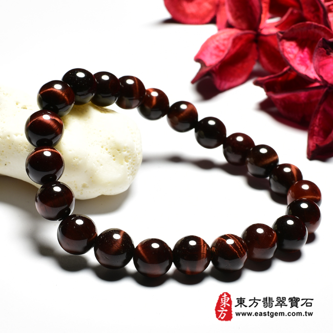 商品名稱:紅虎眼手鍊。(紅虎眼珠子,珠徑約8mm,OTR078)。客製化設計各種紅虎眼珠串、紅虎眼珠子、紅虎眼手鍊、紅虎眼手珠。★附東方翡翠寶石保證卡