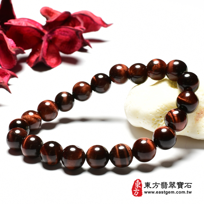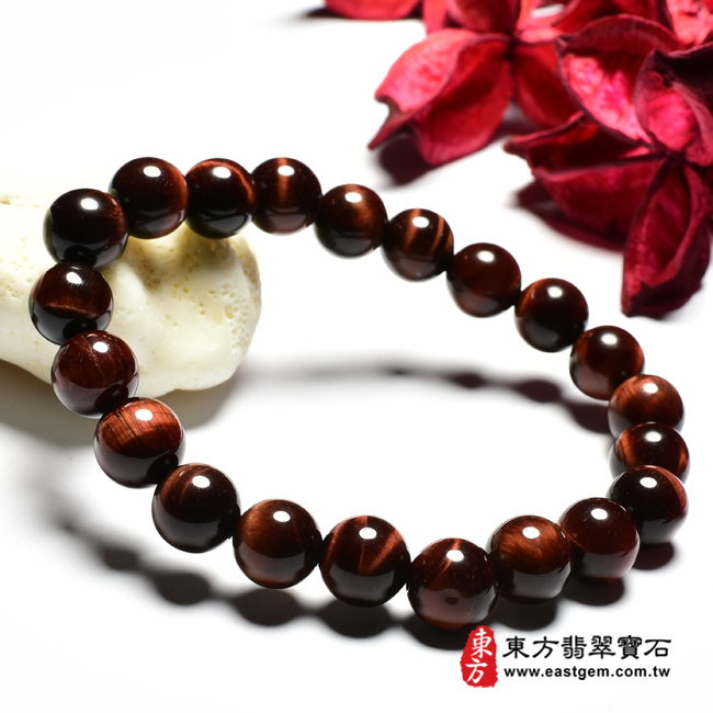 商品名稱:紅虎眼手鍊。(紅虎眼珠子,珠徑約8mm,OTR080)。客製化設計各種紅虎眼珠串、紅虎眼珠子、紅虎眼手鍊、紅虎眼手珠。★附東方翡翠寶石保證卡