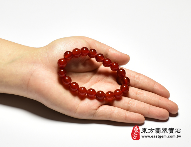 商品名稱:紅瑪瑙手鍊(紅瑪瑙珠子,珠徑約10mm,19顆珠,OML301) 客製化設計各種紅瑪瑙珠串、紅瑪瑙珠子、紅瑪瑙手鍊、紅瑪瑙手珠。★附東方翡翠寶石保證卡