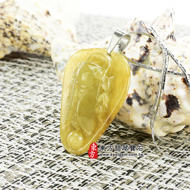 商品名稱:翡翠蟬項鍊玉珮(蟬與珠子,高風亮節:蟬牌A貨翡翠蟬玉珮、緬甸玉蟬玉墜)。黃翡蟬,CI008。客製化訂做各種翡翠蟬吊墜玉珮項鍊。★附A貨翡翠雙證書