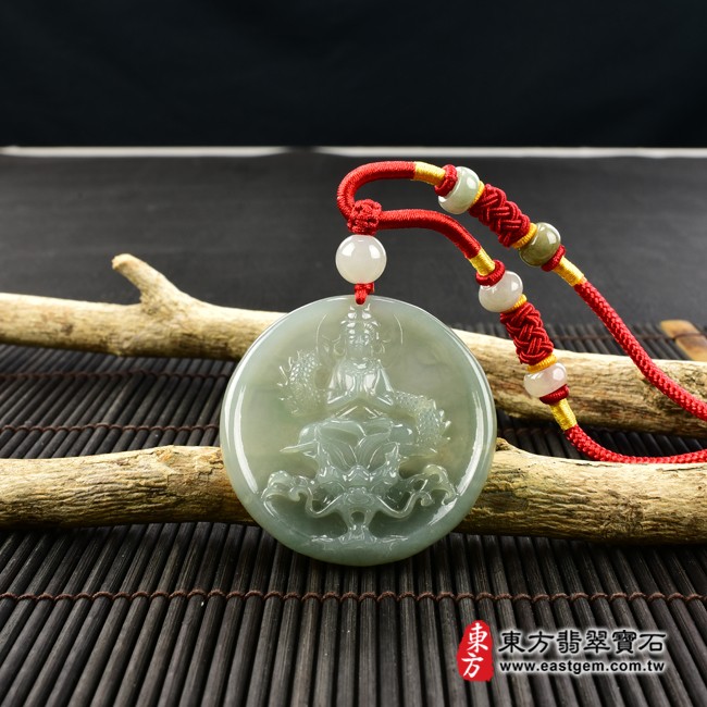商品名稱:翡翠觀音項鍊玉珮(觀世音菩薩、乘龍觀音:觀音牌A貨翡翠觀音玉珮、緬甸玉觀世音菩薩玉墜)。淡綠色糯種觀音,GY1320。客製化訂做各種翡翠觀音吊墜玉珮項鍊。★附A貨翡翠雙證書