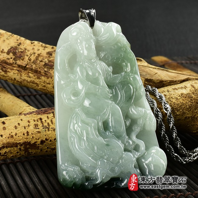 商品名稱:翡翠觀音項鍊玉珮(觀世音菩薩、乘龍觀音:觀音牌A貨翡翠觀音玉珮、緬甸玉觀世音菩薩玉墜)。淡綠色糯種帶飄花觀音,GY1327。客製化訂做各種翡翠觀音吊墜玉珮項鍊。★附A貨翡翠雙證書