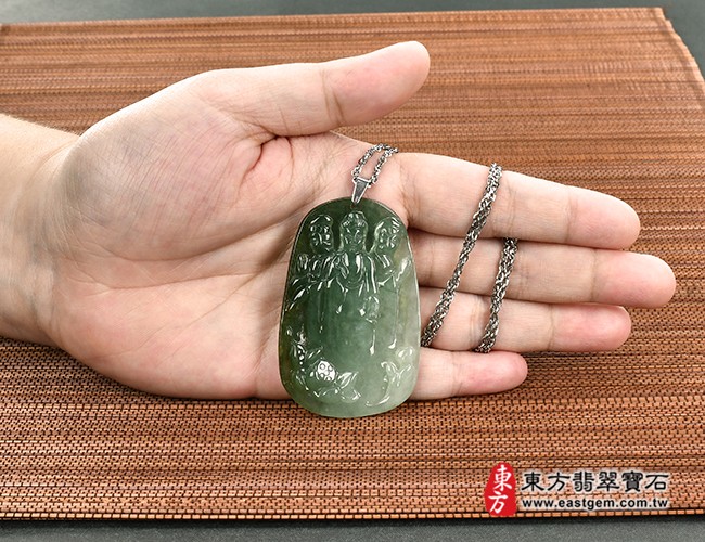 2.客製化雕刻神明翡翠玉佩(吊墜):觀音、關公、佛祖、彌勒佛、媽祖、土地公、耶穌、聖母、各種道教神明、佛教神明、東方和西方的神明都可以客製化雕刻製作。