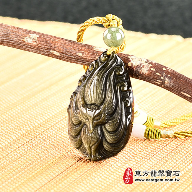商品名稱:金曜石九尾狐狸項鍊玉珮(九尾狐狸、招財、人緣、桃花,狐仙:九尾狐狸牌金曜石九尾狐狸玉珮、金曜石九尾狐狸玉墜、)。金曜石九尾狐狸,FX050。客製化訂做各種金曜石狐狸吊墜玉珮項鍊。★附東方翡翠寶石保證卡