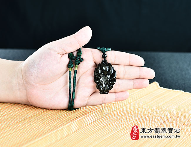 商品名稱:金曜石九尾狐狸項鍊玉珮(九尾狐狸、招財、人緣、桃花,狐仙:九尾狐狸牌金曜石九尾狐狸玉珮、金曜石九尾狐狸玉墜、)。金曜石九尾狐狸,FX056。客製化訂做各種金曜石狐狸吊墜玉珮項鍊。★附東方翡翠寶石保證卡