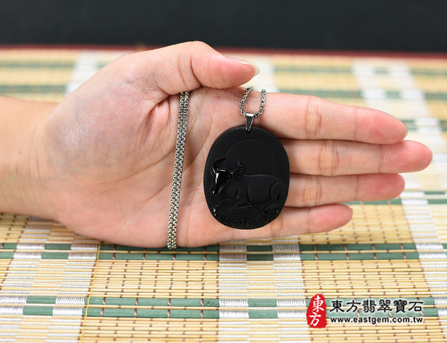 商品名稱:黑曜石牛項鍊玉珮(牛運亨通:牛牌黑曜石牛玉珮、黑曜石牛玉墜,牛十二生肖項鍊)。全黑黑曜石牛,CO034。客製化訂做各種黑曜石牛吊墜玉珮項鍊。★東方翡翠寶石保證卡