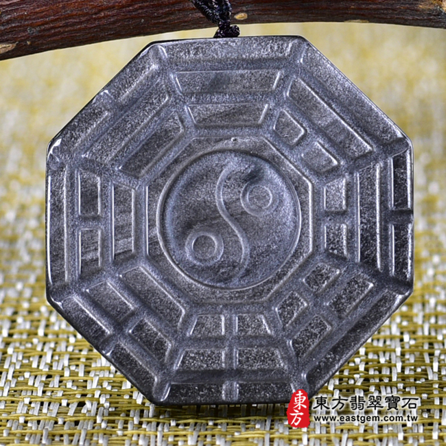 商品名稱:銀曜石八卦項鍊玉珮(精工八卦太極:八卦牌銀曜石八卦玉珮、銀曜石八卦玉墜)。銀曜石八卦,ED287。客製化訂做各種銀曜石八卦吊墜玉珮項鍊。★附東方翡翠寶石保證卡