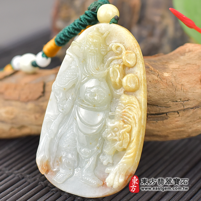 商品名稱:翡翠關公項鍊玉珮(關聖帝君、關公:關公牌A貨翡翠關公玉珮、緬甸玉關公玉墜)。淺綠色糯種帶黃翡關公,KG474。客製化訂做各種翡翠關公吊墜玉珮項鍊。★附A貨翡翠雙證書