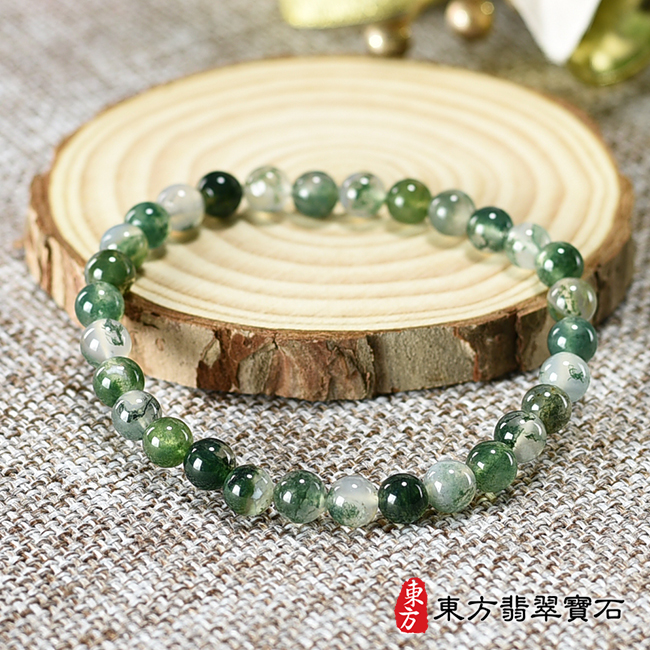 商品名稱:水草玉手鍊(水草玉珠子,珠徑約6.6mm,30顆珠,OGR031)。客製化設計各種水草玉珠串、水草玉珠子、水草玉手環、水草玉手珠。★附東方翡翠寶石保證卡