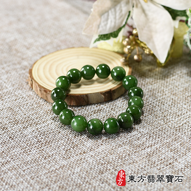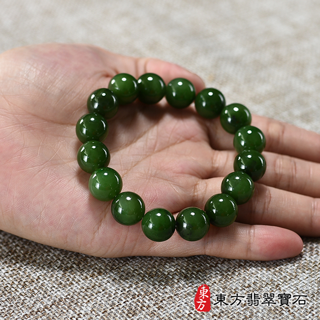 商品名稱:碧玉手珠(碧玉手珠、和田玉手珠、深綠色,珠徑約12.1mm,16顆珠,ORA040)。客製化訂做各種碧玉手珠,和田玉手珠。★附東方翡翠寶石證書