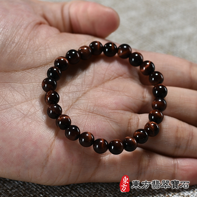 商品名稱:紅虎眼手鍊。(紅虎眼珠子,珠徑約6.5mm,24顆珠,OTR126)。客製化設計各種紅虎眼珠串、紅虎眼珠子、紅虎眼手鍊、紅虎眼手珠。★附東方翡翠寶石保證卡