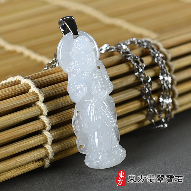觀音法像有33種,各種觀世音菩薩和佛祖的法像,東方翡翠寶石可以為您客製化手工雕刻。常見的觀音菩薩法像有:楊柳觀音、龍頭觀音、持經觀音、圓光觀音、遊戲觀音、白衣觀音、蓮臥觀音、瀧見觀音、魚籃觀音、德王觀音、水月觀音、一葉觀音、青頸觀音、威德觀音、延命觀音、眾寶觀音、岩戶觀音、能靜觀音、阿耨觀音、阿摩提觀音、葉衣觀音、琉璃觀音、多羅尊觀音、蛤蜊觀音、六時觀音、普悲觀音、馬郎婦觀音、合掌觀音、如觀音、不二觀音、持蓮觀音、千手千眼觀音、送子觀音。有任何需要,都可以來電詢問,東方翡翠寶石會用心為您雕刻各種佛教和道教的神明。