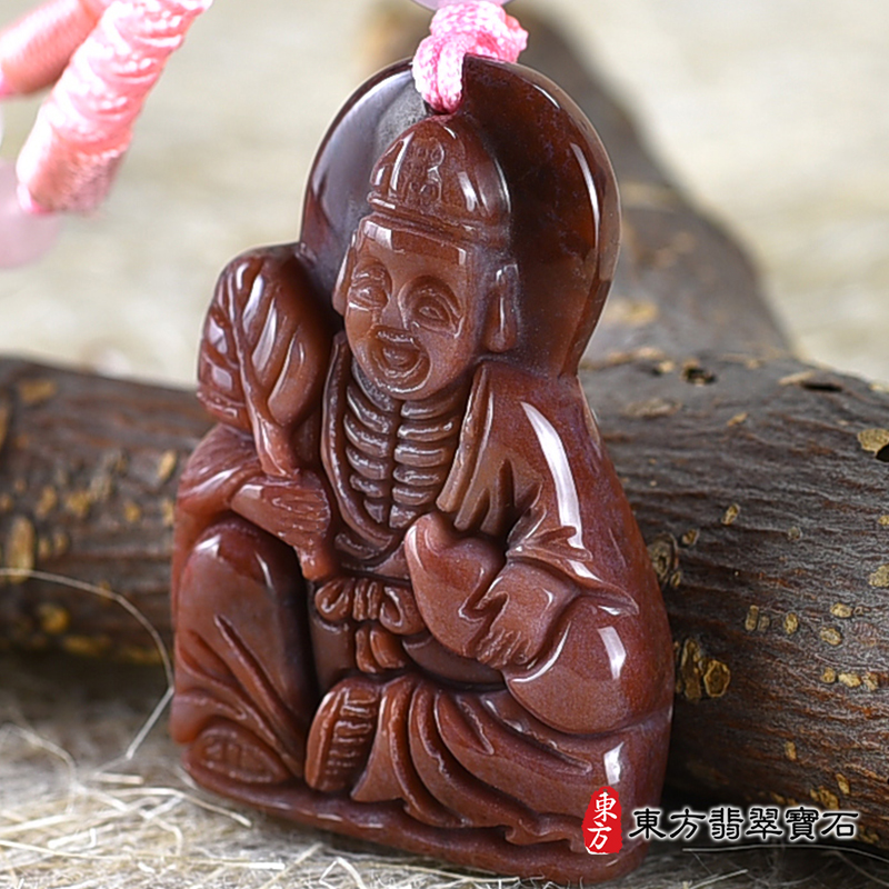商品名稱:水草玉濟公項鍊玉珮(濟公:濟公牌水草玉濟公玉珮、水草玉濟公玉墜)。紅色水草玉濟公,GG061。客製化訂做各種水草玉濟公吊墜玉珮項鍊。★附東方翡翠寶石保證卡