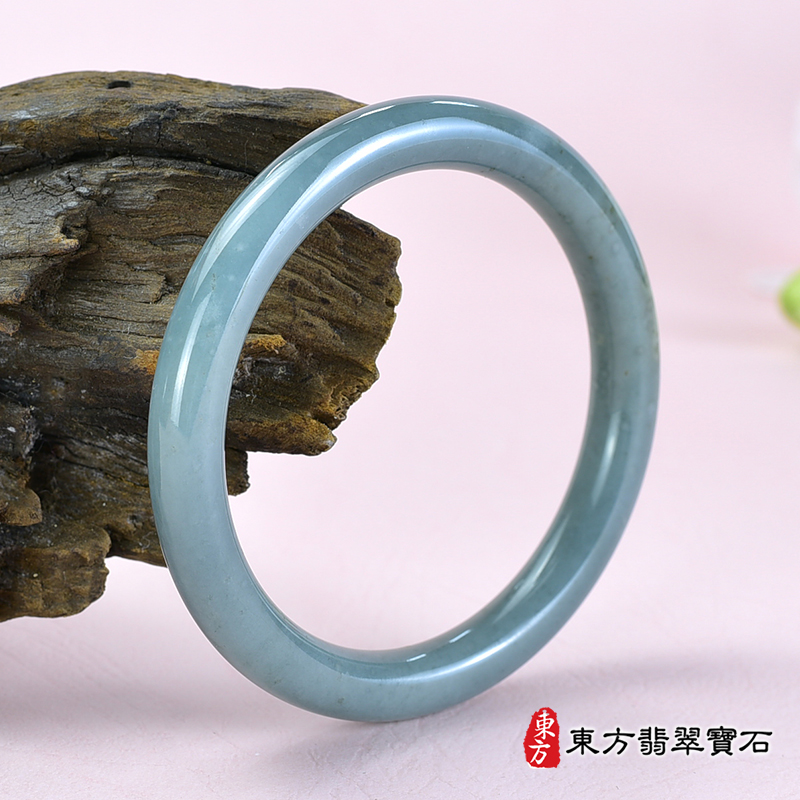 這是一只翡翠材質的手鐲,「油青手鐲、油青玉鐲、油青翡翠手鐲、油青翡翠玉鐲。(淺綠色油青玉鐲手鐲,些微透光,圓鐲19,OG007)」。在分級裡面,它屬於「油青種」的種地。