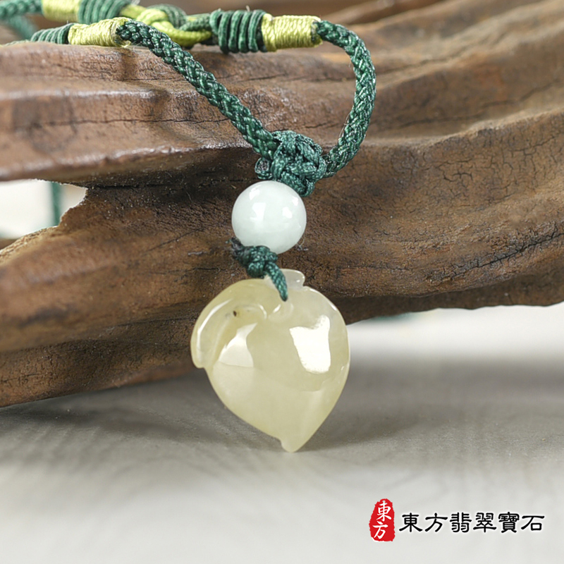 商品名稱:翡翠壽桃項鍊玉珮(福壽雙全:壽桃牌A貨翡翠壽桃玉珮、緬甸玉壽桃玉墜)。淺黃綠色糯種壽桃,FW234。客製化訂做各種翡翠壽桃吊墜玉珮項鍊。★附A貨翡翠雙證書