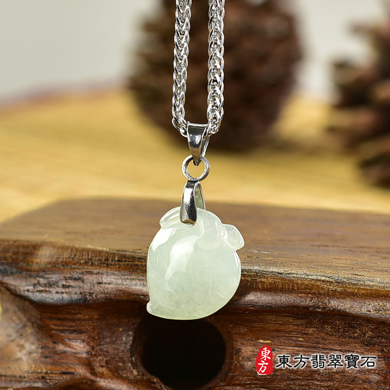 商品名稱:翡翠壽桃項鍊玉珮(福壽雙全:壽桃牌A貨翡翠壽桃玉珮、緬甸玉壽桃玉墜)。淺綠色糯種壽桃,FW284。客製化訂做各種翡翠壽桃吊墜玉珮項鍊。★附A貨翡翠雙證書