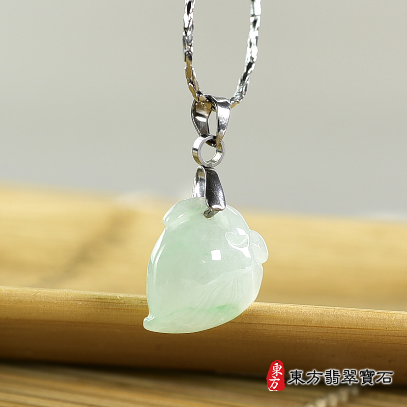 商品名稱:翡翠壽桃項鍊玉珮(福壽雙全:壽桃牌A貨翡翠壽桃玉珮、緬甸玉壽桃玉墜)。淺綠色糯種壽桃,FW328。客製化訂做各種翡翠壽桃吊墜玉珮項鍊。★附A貨翡翠雙證書