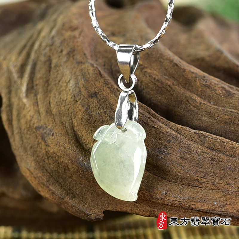 商品名稱:翡翠壽桃項鍊玉珮(福壽雙全:壽桃牌A貨翡翠壽桃玉珮、緬甸玉壽桃玉墜)。淺綠色冰糯種壽桃,FW332。客製化訂做各種翡翠壽桃吊墜玉珮項鍊。★附A貨翡翠雙證書