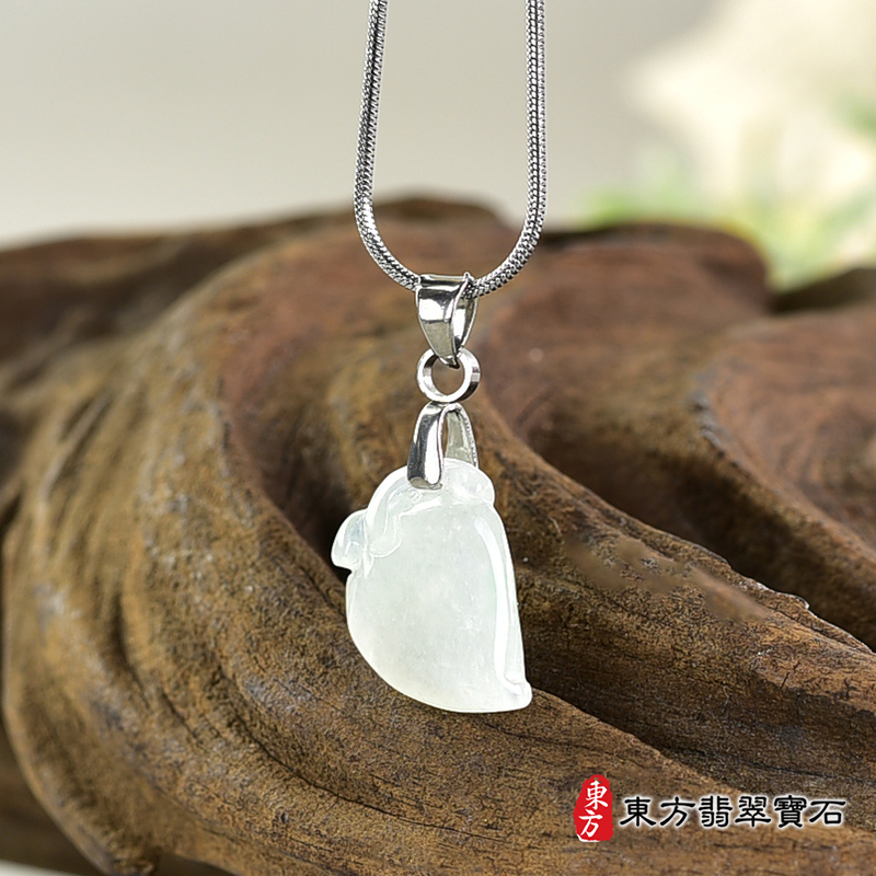 商品名稱:翡翠壽桃項鍊玉珮(福壽雙全:壽桃牌A貨翡翠壽桃玉珮、緬甸玉壽桃玉墜)。淺綠色冰糯種壽桃,FW339。客製化訂做各種翡翠壽桃吊墜玉珮項鍊。★附A貨翡翠雙證書