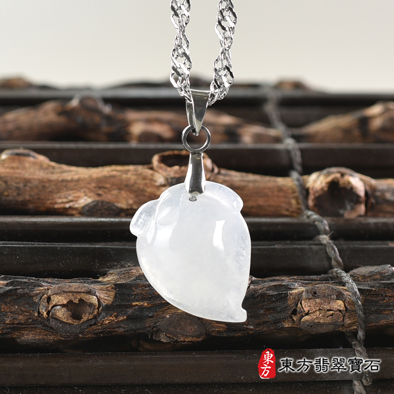 商品名稱:翡翠壽桃項鍊玉珮(福壽雙全:壽桃牌A貨翡翠壽桃玉珮、緬甸玉壽桃玉墜)。白色微冰糯種壽桃,FW368。客製化訂做各種翡翠壽桃吊墜玉珮項鍊。★附A貨翡翠雙證書