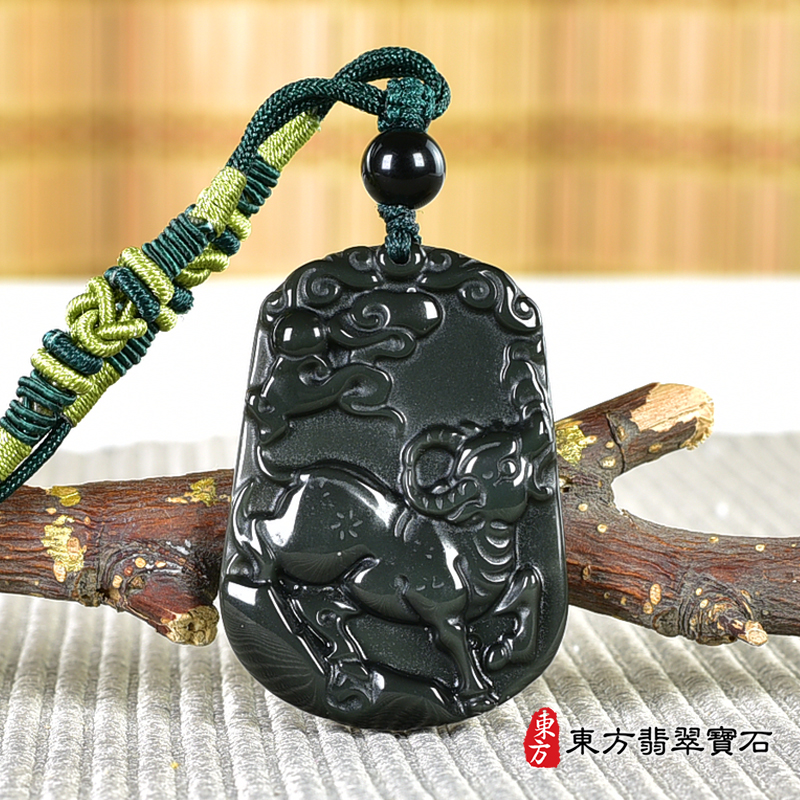 商品名稱:金曜石牛項鍊玉珮(牛運亨通:牛牌金曜石牛玉珮、金曜石牛玉墜、牛十二生肖項鍊)。金曜石牛,CO051。客製化訂做各種金曜石牛吊墜玉珮項鍊。★附東方翡翠寶石保證卡