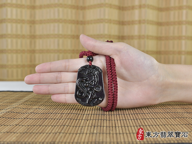 商品名稱:金曜石蛇項鍊玉珮(靈蛇舞動、招財靈蛇帶蝙蝠:蛇牌金曜石蛇玉珮、金曜石蛇玉墜、蛇十二生肖項鍊)。金曜石蛇,SN035。客製化訂做各種金曜石蛇吊墜玉珮項鍊。★附東方翡翠寶石保證卡