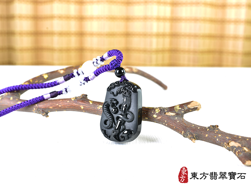 商品名稱:黑曜石蛇項鍊玉珮(靈蛇舞動、招財靈蛇帶蝙蝠:蛇牌黑曜石蛇玉珮、黑曜石蛇玉墜、蛇十二生肖項鍊)。黑曜石蛇,SN037。客製化訂做各種黑曜石蛇吊墜玉珮項鍊。★附東方翡翠寶石保證卡