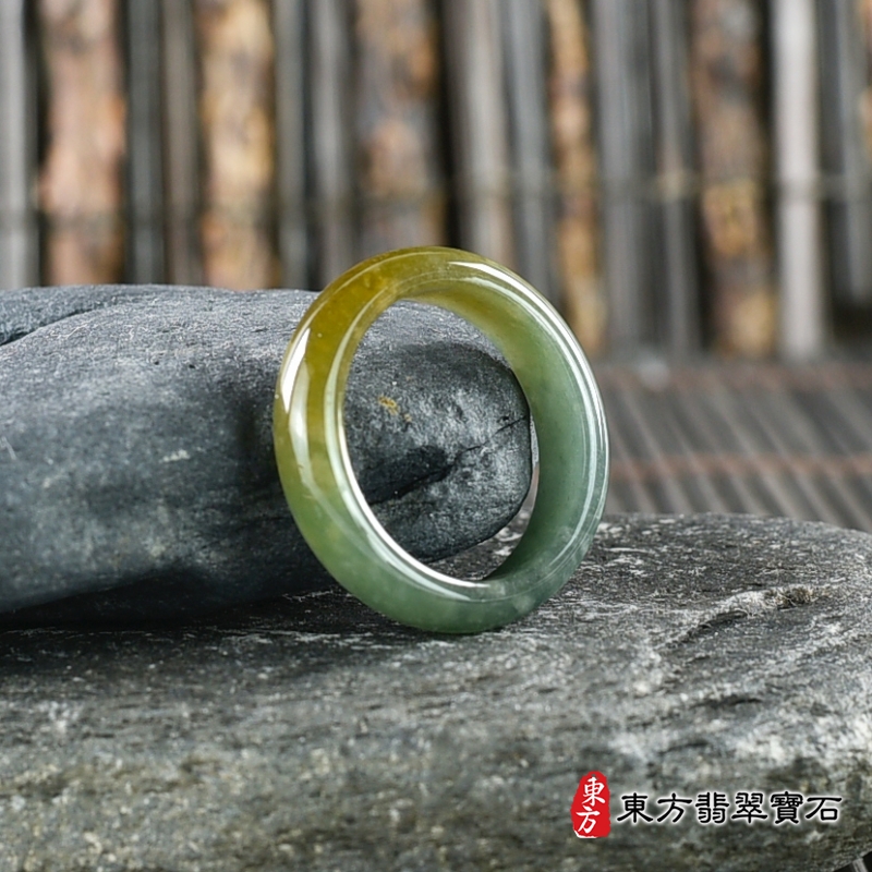商品名稱:翡翠戒指(玉戒指、A貨翡翠戒指、緬甸玉戒指,版指戒,版戒指,結婚戒指、結婚對戒、男女對戒)。綠帶黃褐色糯種翡翠戒指,國際圍14,RNG245。客製化訂做各種翡翠戒指吊墜玉珮項鍊。★附A貨翡翠雙證書