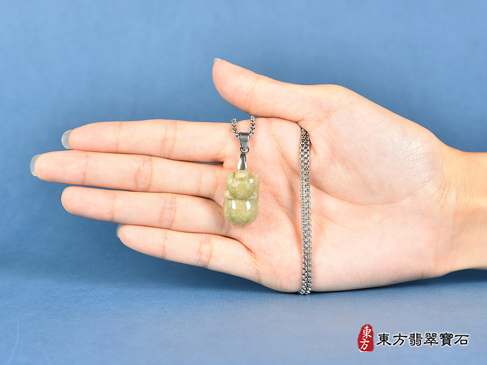 商品名稱:翡翠豬項鍊玉珮(豬事如意:豬牌A貨翡翠豬玉珮、緬甸玉豬玉墜、豬十二生肖項鍊)。綠加黃褐色糯種豬,PG057。客製化訂做各種翡翠豬吊墜玉珮項鍊。★附A貨翡翠雙證書
