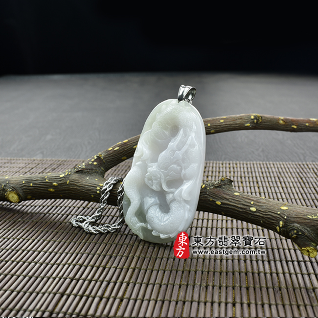 商品名稱:翡翠龍項鍊玉珮(飛騰游龍:龍牌A貨翡翠龍玉珮、緬甸玉龍玉墜、龍十二生肖項鍊)。細糯種龍,DR082。客製化訂做各種翡翠龍吊墜玉珮項鍊。★附A貨翡翠雙證書