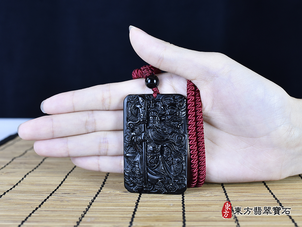 商品名稱:黑曜石關公項鍊玉珮(乘龍關聖帝君、乘龍關公:關公牌黑曜石關公玉珮、黑曜石關公玉墜)。全黑黑曜石關公,KG666。客製化訂做各種黑曜石關公吊墜玉珮項鍊。★附東方翡翠寶石保證卡
