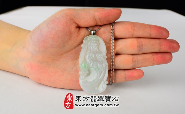商品名稱:翡翠觀音項鍊玉珮(觀世音菩薩,蓮花觀音:觀音牌A貨翡翠觀音玉珮、緬甸玉觀音玉墜)。白綠細糯種觀音,GY-187。客製化訂做各種翡翠觀音吊墜玉珮項鍊。★附A貨翡翠雙證書