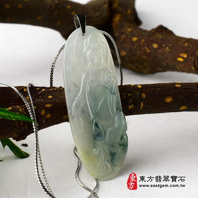商品名稱:翡翠觀音項鍊玉珮(觀世音菩薩,寶瓶觀音:觀音牌A貨翡翠觀音玉珮、緬甸玉觀音玉墜)。飄花細糯種觀音,GY-086。客製化訂做各種翡翠觀音吊墜玉珮項鍊。★附A貨翡翠雙證書