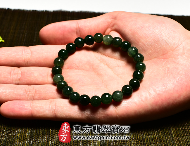 商品名稱:油青種翡翠手鍊,油青種緬甸玉手鍊(油青種珠子、暗綠色,珠徑約8mm,OOG013)。客製化設計各種翡翠珠串、翡翠珠子、緬甸玉手鍊、緬甸玉珠串、緬甸玉珠子、緬甸玉手珠。★附A貨翡翠雙證書