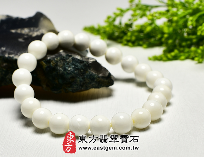 商品名稱:白硨磲手鍊(白硨磲珠子,珠徑約8mm,WCG015)。客製化設計各種白硨磲珠串、白硨磲珠子、白硨磲手鍊、白硨磲手珠。★附東方翡翠寶石保證卡