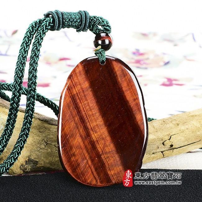 這一款吊墜是「紅虎眼石」的材質,屬於半寶石、又稱虎睛石,表面具有絹絲光澤、質地堅硬,顏色大多為紅褐色、或呈棕、褐等顏色。紅虎眼石、紅色,有著「積極」的寓意,期許配戴者能堅定信念,激起勇氣、自信與貫徹執行能力,也增強自身的活力與生命力。虎眼石顧名思義,就像是森林之王老虎的眼睛一般,呈現出霸氣淩厲的氣勢。從古至今,流傳著虎眼石有著辟邪招財的功效,男士配戴虎眼石,祝福他們事業蒸蒸日上。女士配戴期許她們堅定心志、獨立自主。