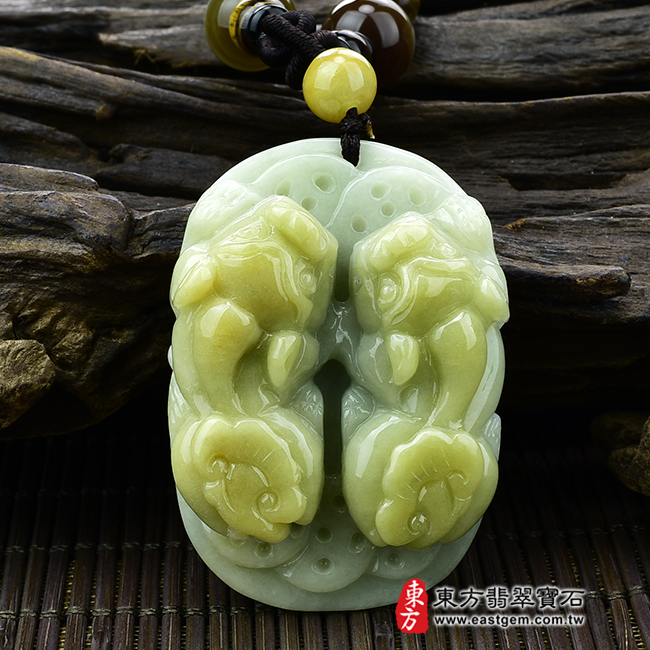 商品名稱:翡翠貔貅項鍊玉珮(招財公母貔貅帶如意、招財如意:貔貅牌A貨翡翠貔貅玉珮、緬甸玉貔貅玉墜)。細糯種帶黃翡貔貅,PF008。客製化訂做各種翡翠貔貅吊墜玉珮項鍊。★附A貨翡翠雙證書