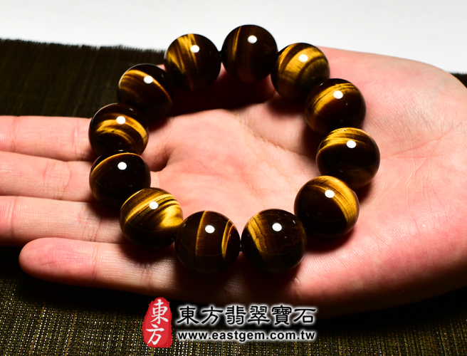 商品名稱:黃虎眼手鍊(黃虎眼珠子,珠徑約18mm,OTY005) 客製化設計各種黃虎眼珠串、黃虎眼珠子、黃虎眼手鍊、黃虎眼手珠。★附東方翡翠寶石保證卡