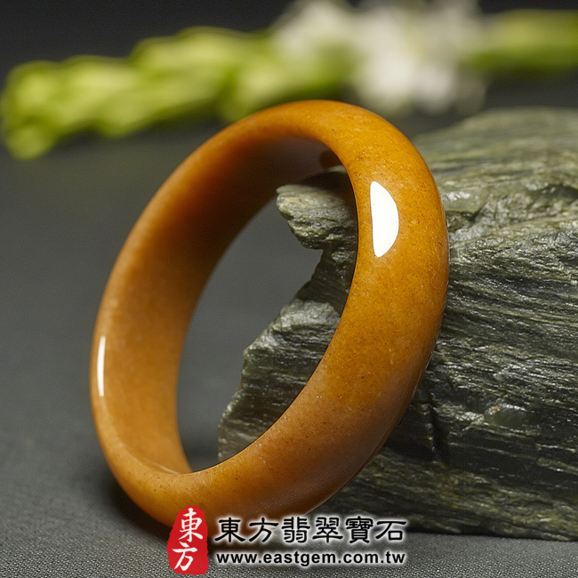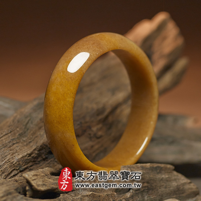 商品名稱:新疆黃玉手鐲。(橘橙黃色,圓鐲19)YL017。客製化訂做各種新疆黃玉手鐲。★附東方翡翠寶石雙證書