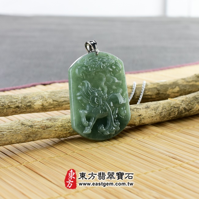 商品名稱:翡翠麒麟項鍊玉珮(神獸獻瑞:麒麟牌A貨翡翠麒麟玉珮、緬甸玉麒麟玉墜)。深綠色油青種麒麟,CL022。客製化訂做各種翡翠麒麟吊墜玉珮項鍊。★附A貨翡翠雙證書