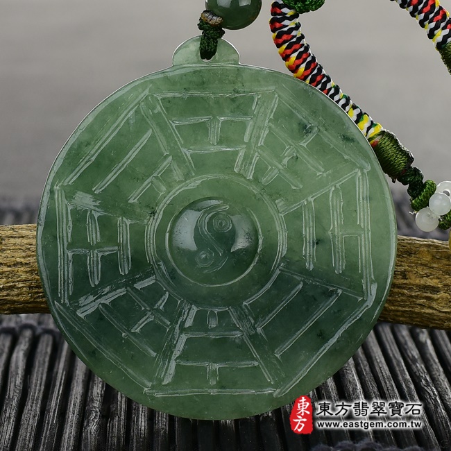 商品名稱:翡翠八卦項鍊玉珮(精工八卦太極,後天八卦,太極可轉動:八卦牌A貨翡翠八卦玉珮、緬甸玉八卦玉墜)。綠色油青種八卦,ED108。客製化訂做各種翡翠八卦吊墜玉珮項鍊。★附A貨翡翠雙證書