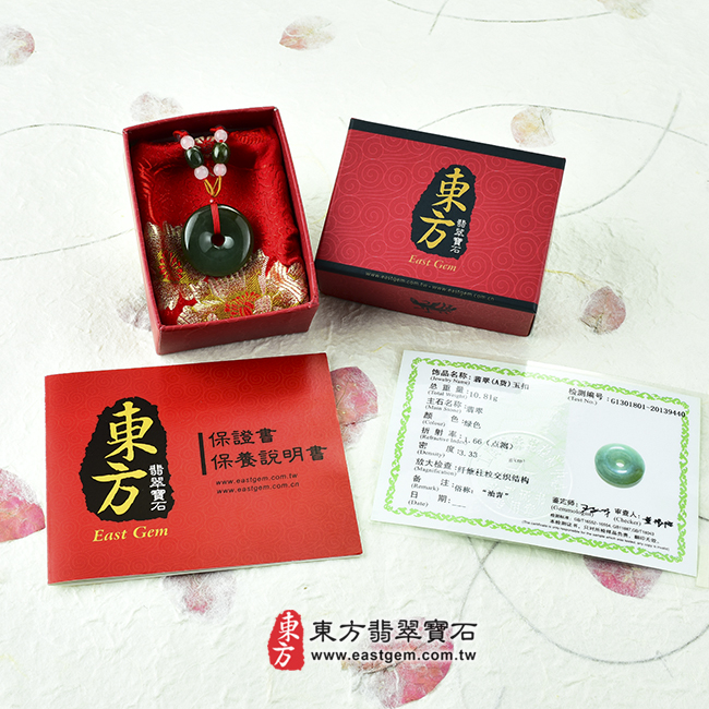 ⊙翡翠商品都有雙證書:附翡翠A貨證書,以及東方翡翠店家保證書。