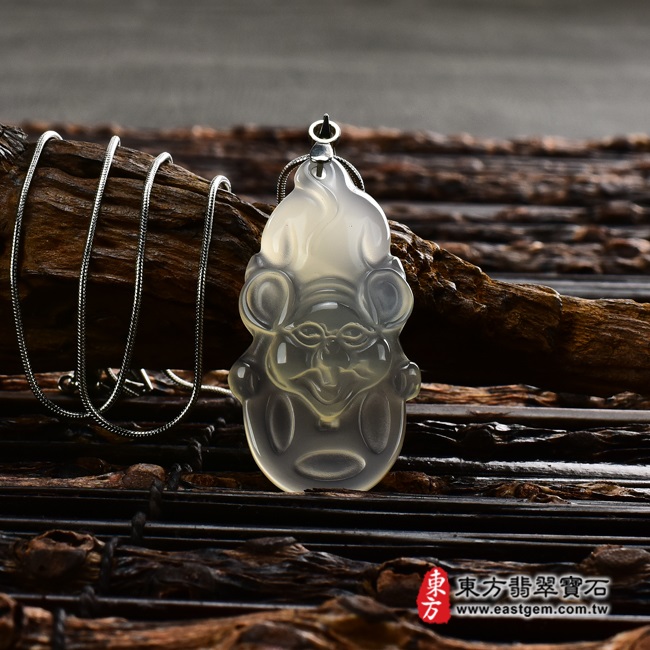 這一只吊墜的材質為瑪瑙,色澤柔和,內裡晶瑩,澄如明鏡。內部的結構和其密度極高、料子極細,瑪瑙這個材質的硬度有7,質感扎實,相當適合拿來做吊墜。吊墜的手感溫和細膩,帶點微涼感,沁人心脾,相當討喜。瑪瑙也是佛教七寶之一,象徵友善的愛心和希望,自古以來一直被當為避邪、護身符使用,配戴瑪瑙的吊墜,可以增強質樸和親切的力量,同時對於增加自信都會有正面的幫助。