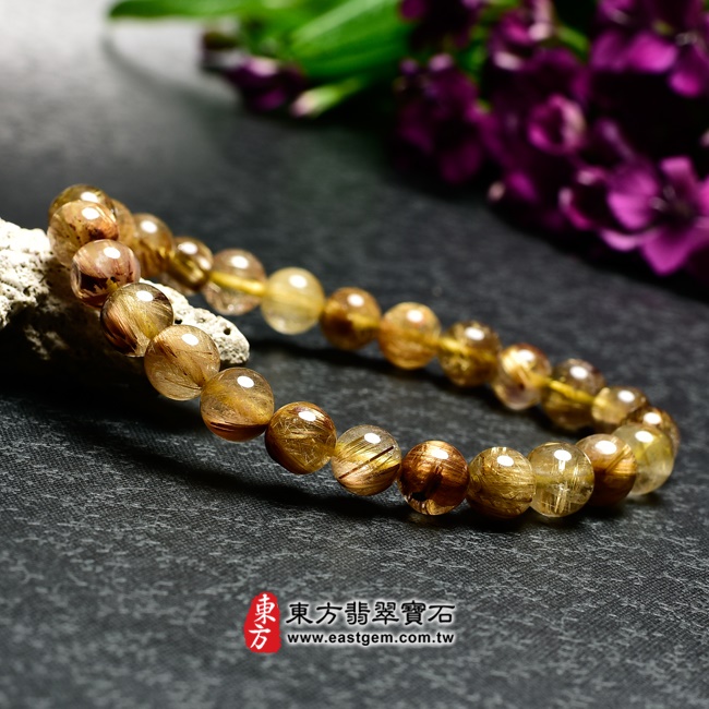 商品名稱:髮晶手鍊(髮晶珠子,珠徑約7~8mm,OFJ033) 客製化設計各種髮晶珠串、髮晶珠子、髮晶手珠。★附東方翡翠寶石保證卡