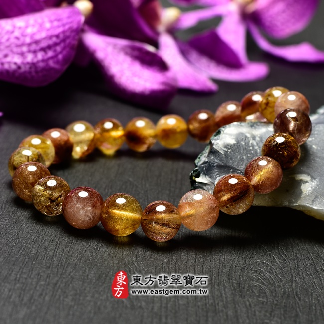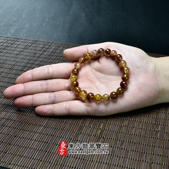 商品名稱:髮晶手鍊(髮晶珠子,珠徑約9mm,OFJ049) 客製化設計各種髮晶珠串、髮晶珠子、髮晶手珠。★附東方翡翠寶石保證卡