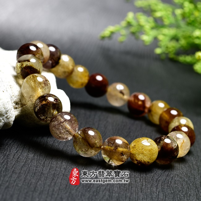 商品名稱:髮晶手鍊(髮晶珠子,珠徑約9.5~10mm,OFJ122) 客製化設計各種髮晶珠串、髮晶珠子、髮晶手珠。★附東方翡翠寶石保證卡