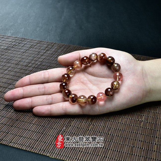 商品名稱:髮晶手鍊(髮晶珠子,珠徑約12mm,OFJ137) 客製化設計各種髮晶珠串、髮晶珠子、髮晶手珠。★附東方翡翠寶石保證卡