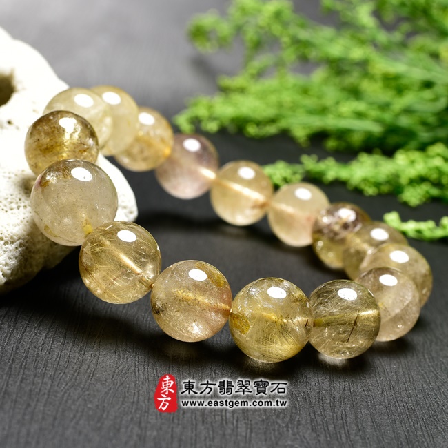 商品名稱:髮晶手鍊(髮晶珠子,珠徑約14~14.5mm,OFJ151) 客製化設計各種髮晶珠串、髮晶珠子、髮晶手珠。★附東方翡翠寶石保證卡
